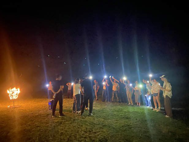 氣氛不斷升溫,現(xiàn)場充滿了歡聲笑語。小伙伴們圍在一起開始了篝火晚會。