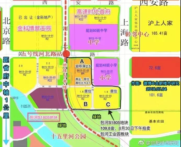 金隅地產以單價1112萬元/畝,總價16.11312億元競得包河S1802號地塊地塊,A、B地塊樓面價8339.96元/平米,C地塊樓面價13899.93元/平米,溢價率55.52%。